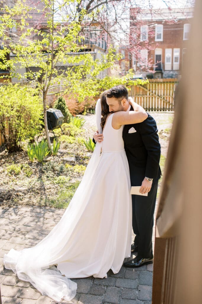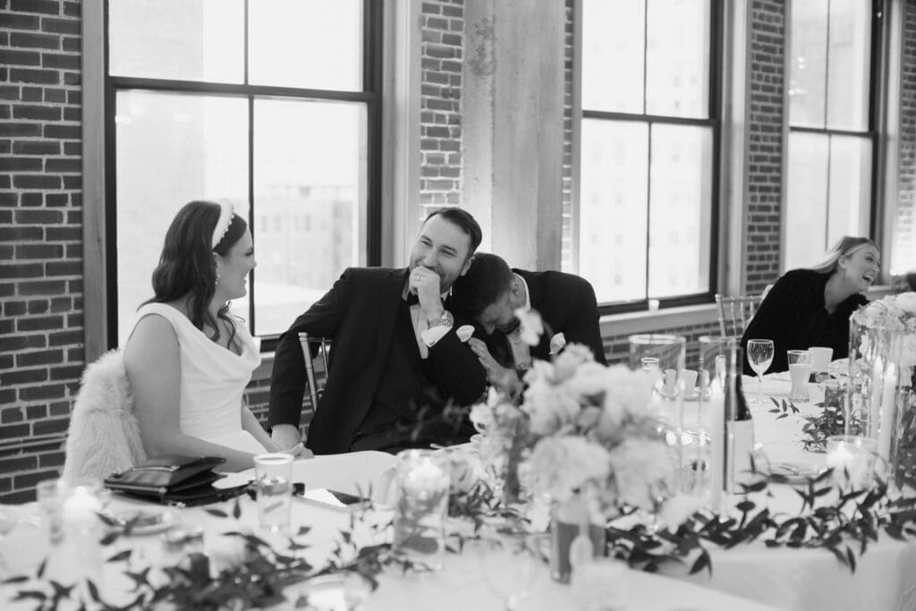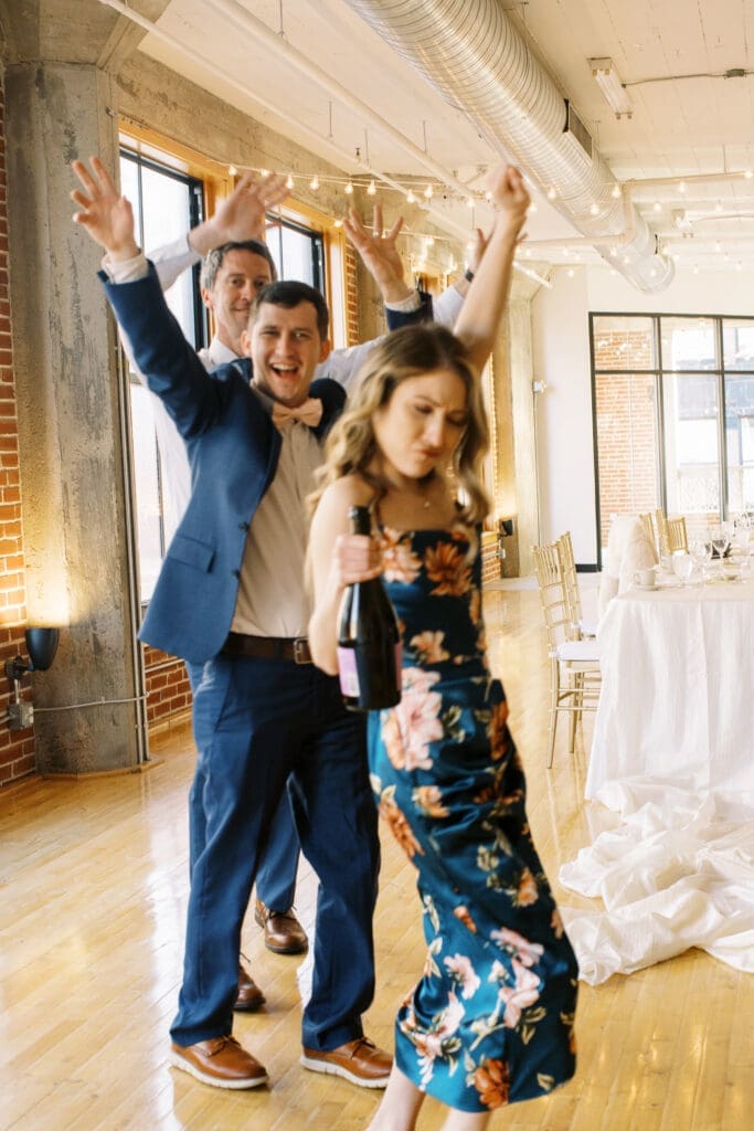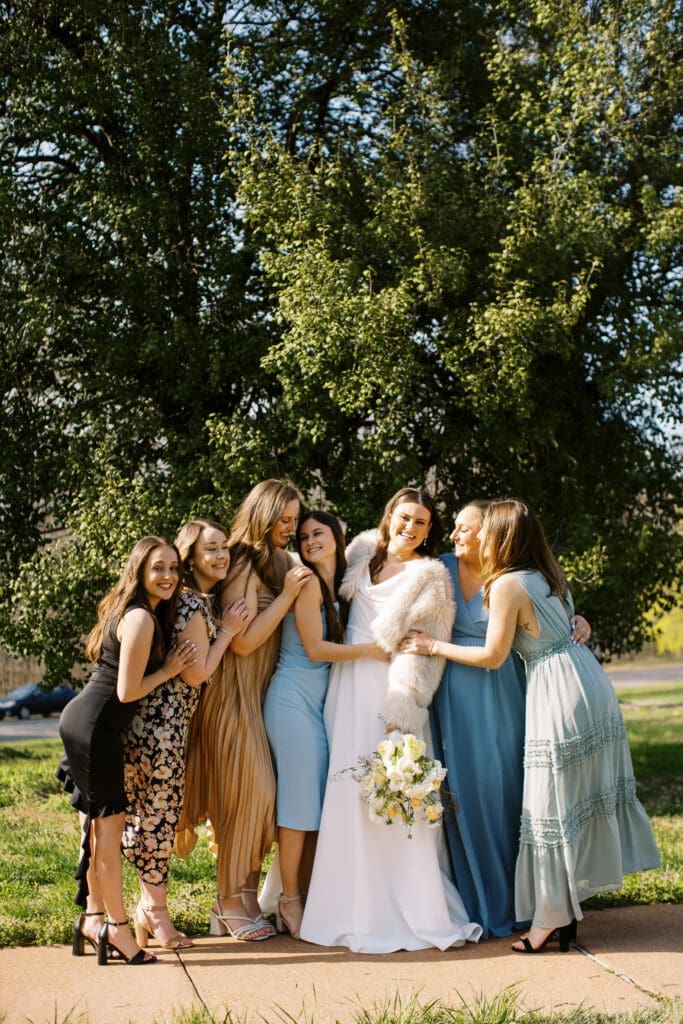 The couple also chose not to have a large wedding party. They had a best man and maid of honor, during the ceremony and then guests of honor, a large group of their friends joined them for quick photos right before the reception. I love the fact that they made their day THEIR day with traditions of their own.